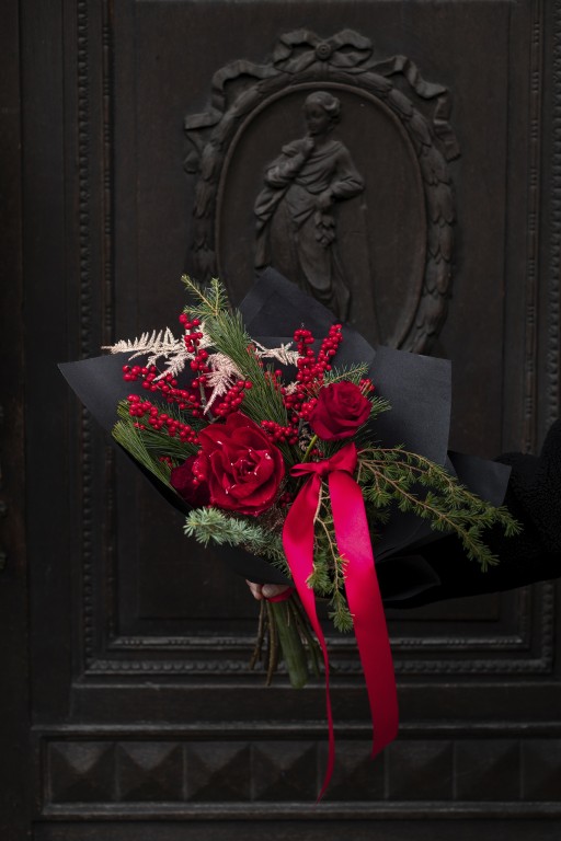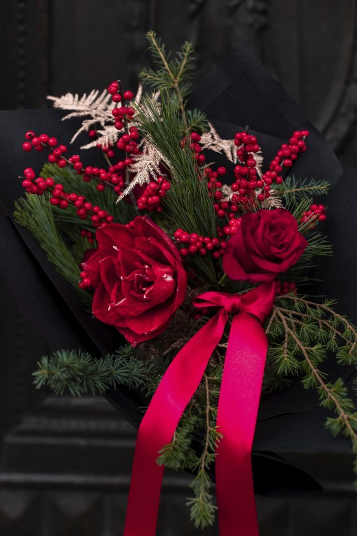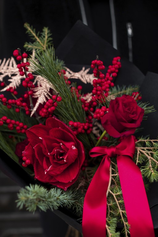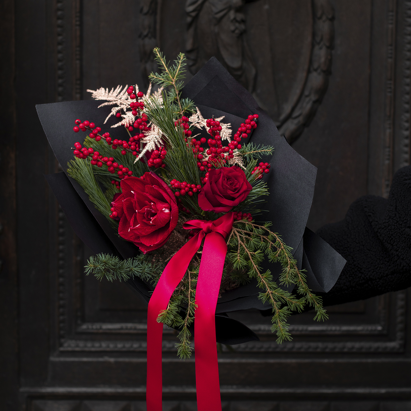 Merry Rouge – eleganter Weihnachtsstrauß in festlichem Rot