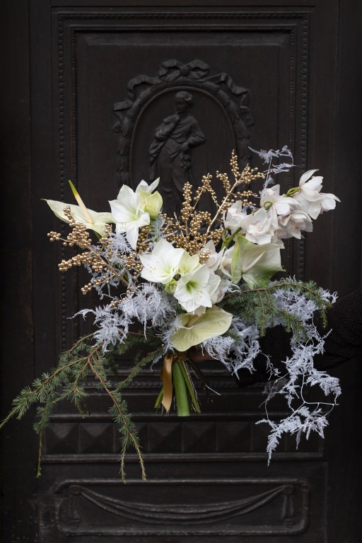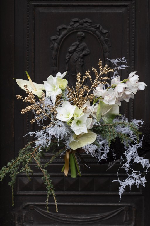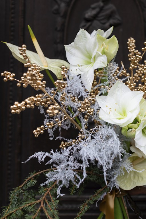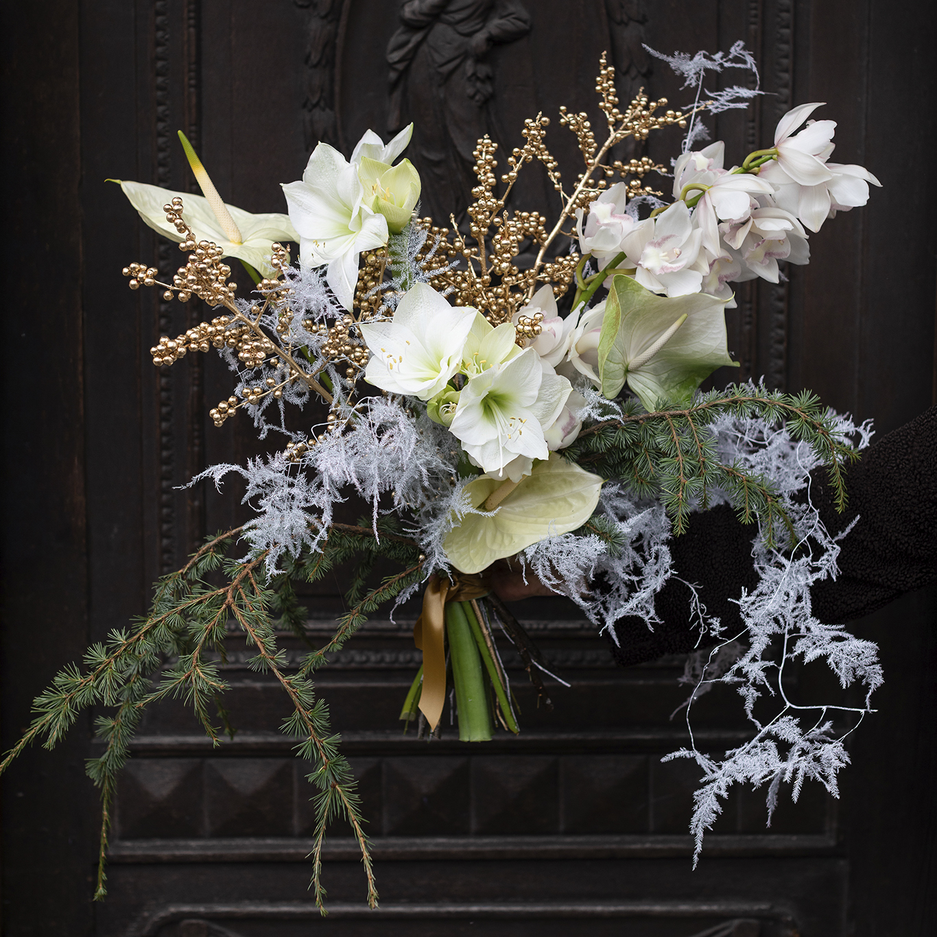 Winter Whisper – exklusiver Winterstrauß in Weiß & Gold