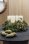 Die vier cremeweißen Stumpenkerzen betonen den puristischen Charakter des Designs und schaffen eine ruhige, harmonische Atmosphäre – perfekt für moderne Wohnräume mit einem Hauch Natur.