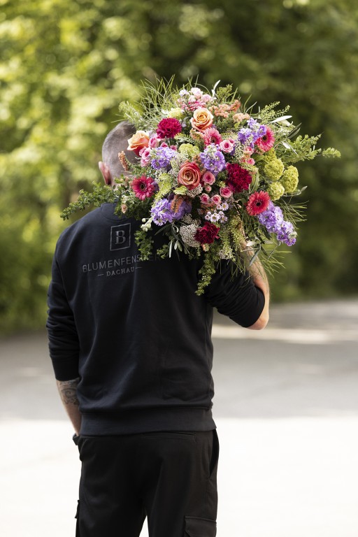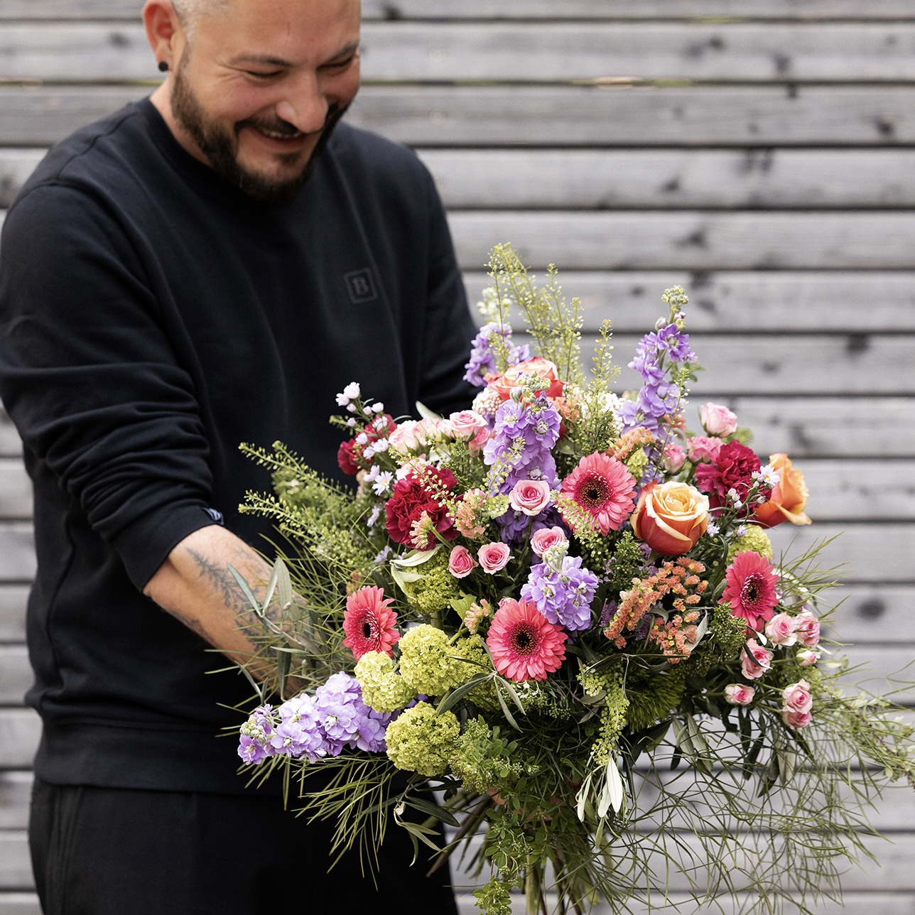 Jeder Strauß wird individuell von Hand gefertigt. Die Blumenauswahl kann je nach Saison und Verfügbarkeit leicht variieren, bleibt aber stets in Stil und Farbwirkung wie abgebildet.