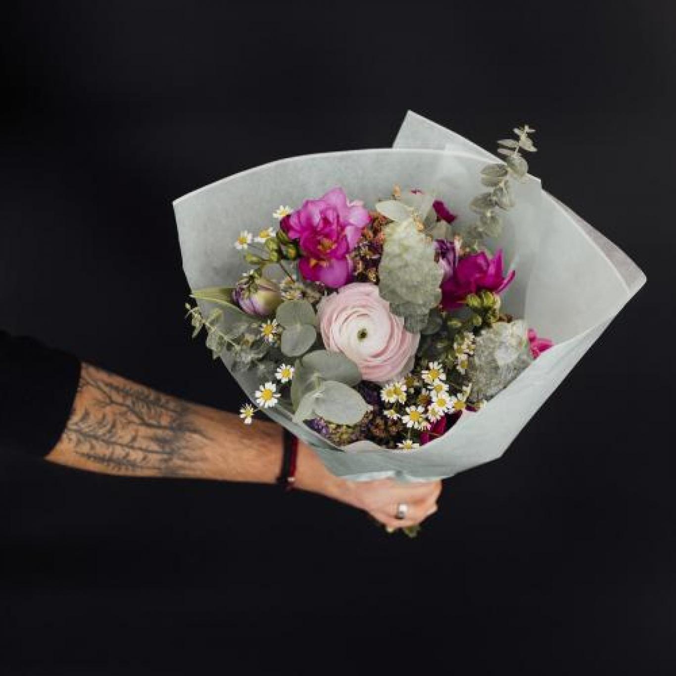 • Blumenstrauß aus gemischten Blumen in rosa-weiß-pink Tönen