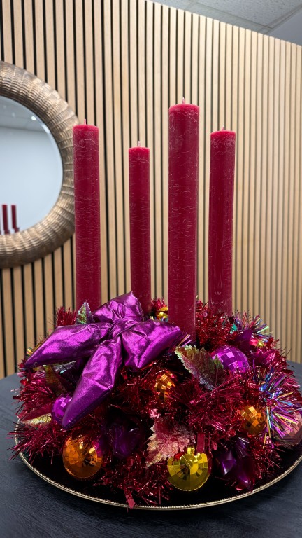 Unser Adventskranz „RUBY“ bringt pure Lebensfreude und festlichen Glanz in die Adventszeit.